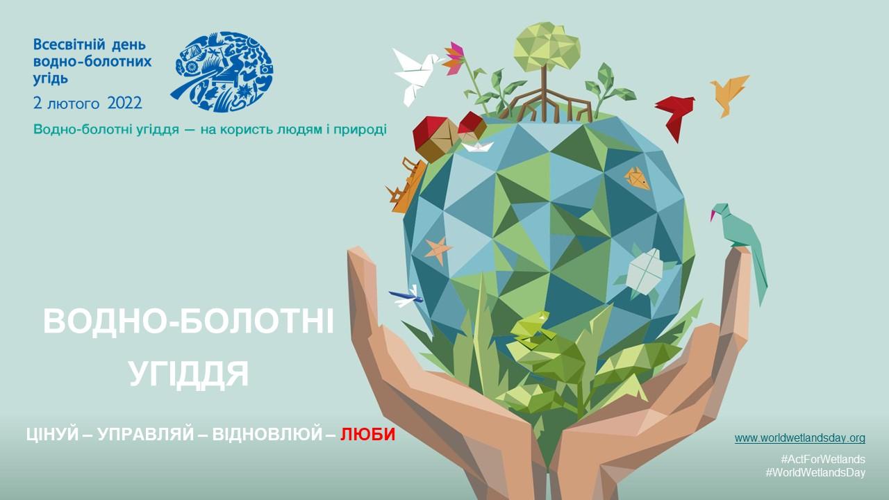 2 лютого – Всесвітній день водно-болотних угідь, який відзначається щорічно з 1997 року як масштабна подія, що поглиблює усвідомлення важливості водно-болотних угідь для людей і планети. У Всесвітньому звіті ООН про розвиток водних ресурсів (2018) водно-болотні угіддя згадані як природоорієнтовані рішення, що можуть допомогти покращити якість води. Водно-болотні угіддя є природним захистом і допомагають у протидії зміні кліматута її наслідкам, надають простір для відпочинку та культурного дозвілля, а також забезпечують користь для психічного здоров’я, пов’язану із взаємодією з природою.